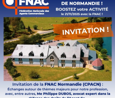 LA JOURNEE DE L’AGENT COMMERCIAL DU VENDREDI 21 NOVEMBRE 2025 à l’Hôtel EDEN SPA-ROUTE DU LAC -14130 PONT L’EVEQUE Programme 13h30 : Accueil des participants 14h : Réunion Débats et Echanges de la journée portants les thèmes suivants : Quel impact aura l’IA dans les relations mandants / agents ? Questions/réponses avec Maitre Philippe DUBOS Avocat de la CPACN […]